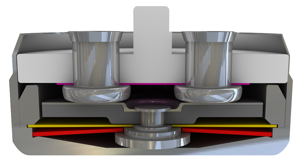 Un mécanisme de commutation riveté d’une façon irréversible, composé d’un pont de contact périphérique et mobile (1), d’un boulon porteur de contact (2), d’un disque ressort (3) et d’un disque bilame (4) est encastré par une forme adaptée et auto-alignement entre un fond de boîtier non conducteur (5) et un support de résistance en céramique (6) avec deux contacts fixes intégrés (7) comme électrodes. Le mécanisme de commutation avec le pont de contact (1) agissant comme élément de transfert du courant est ainsi porté par le disque ressort (3), maintenu entre un épaulement d’appui et un anneau circulaire. Le disque bilame (4) également traversé par le boulon porteur de contact (2), se trouvant en dessous de ce dernier, peut ainsi fonctionner en continu, dégagé des contraintes mécaniques sans que la pression de contact définie par le disque ressort (3) ne diminue. Dès que le disque bilame (4) atteint sa température de commutation nominale, il se place dans sa position inversée contre la force de réglage du disque ressort (3). Les contacts (7) s’ouvrent brusquement. La céramique de résistance CTP commutée parallèlement (6) maintient maintenant la tension de service et développe, indépendamment de la température ambiante, une puissance de chauffe électrique sur le mécanisme de commutation et le maintient durablement au-dessus de sa température de rebondissement de sorte que le mécanisme de commutation ne puisse pas rétrograder. Les contacts restent ouverts. Ce n’est qu’après suppression de la tension de service externe et/ou débranchement de l’appareil que le limiteur de température peut de nouveau se refroidir et commuter dans l’état de fermeture initial.