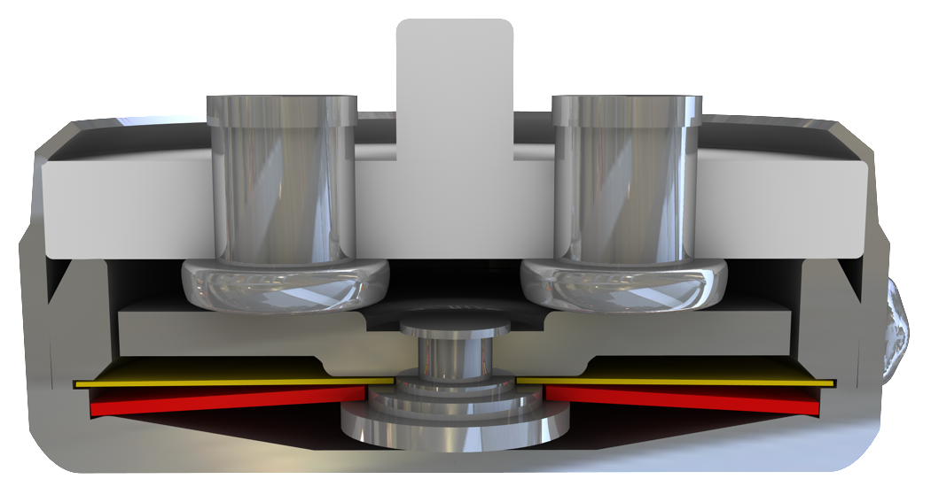 Un mécanisme de commutation riveté d’une façon irréversible, composé d’un pont de contact périphérique et mobile (1), d’un boulon porteur de contact (2), d’un disque ressort (3) et d’un disque bilame (4) est encastré par une forme adaptée et auto-alignement entre le fond d’un boîtier conducteur (5) et un support d’isolation en céramique (6) avec deux contacts fixes intégrés (7) comme électrodes. Le mécanisme de commutation avec le pont de contact (1) agissant comme élément de transfert du courant est ainsi porté par le disque ressort (3), agissant comme élément de transfert du courant, maintenu entre un épaulement d’appui et un anneau circulaire. Le disque bilame (4) également traversé par le boulon porteur de contact (2), se trouvant en dessous de ce dernier, peut ainsi fonctionner en continu, dégagé des contraintes mécaniques sans que la pression de contact définie par le disque ressort (3) ne diminue. Dès que le disque bilame (4) atteint sa température de commutation nominale, il se place dans sa position inversée contre la force de réglage du disque ressort (3). Les contacts s’ouvrent brusquement. Si la température chute maintenant, le disque bilame (4) se réenclenche uniquement lorsque la température de réenclenchement définie est atteinte et les contacts se ferment de nouveau. Parce que le boulon porteur de contact (2) présente des dimensions conséquentes, une rotation circulaire légère du pont de contact circulaire (1) est possible lors de chaque commutation si bien que des résistances de contact restent constamment en dessous de la limite minimale après de nombreux cycles de commutation et que la stabilité de long terme résiste également à une sollicitation élevée. Grâce à un raccordement extérieur supplémentaire avec le boîtier de commutation, le limiteur de température est utilisable en mode triphasé. Dans ce cas le courant est interrompu dans chaque phase.